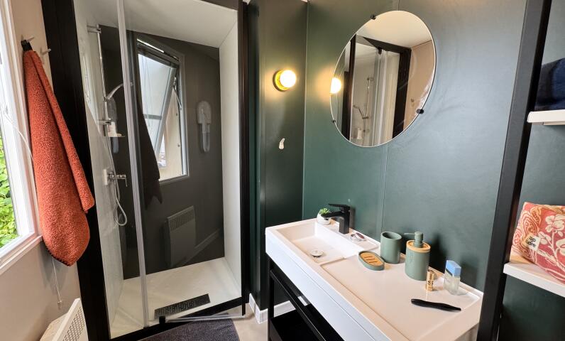 Das Mobilheim Prestige Plus für 4 Personen (32 m²) bietet den idealen Rahmen für einen Urlaub in der Bretagne. Auf unserem 4-Sterne-Campingplatz in Saint-Pol-de-Léon gelegen, ist diese moderne und komfortable Unterkunft perfekt für Familien- oder Freundschaftsaufenthalte. Mit seiner durchdachten Raumaufteilung und praktischen Ausstattung verbindet es Entspannung und Entdeckung in einer natürlichen Umgebung mit atemberaubenden Landschaften.