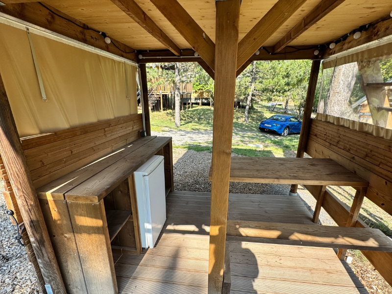 Set off on an adventure with our bivouac tent for 2, designed for nature lovers and hikers seeking simplicity and comfort. Inside, you’ll find two single beds (80x190) with duvets and pillows, practical storage spaces, and a fridge with a freezer compartment to keep your supplies cool.
