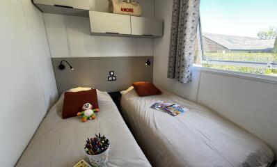 In the heart of our 4-star campsite in Saint-Pol-de-Léon, the Prestige Mobile Home for 4 people (26 m²) offers a stay combining comfort, modernity, and conviviality. With its well-designed spaces and contemporary amenities, it is ideal for a holiday with family or friends, in a warm and functional setting.