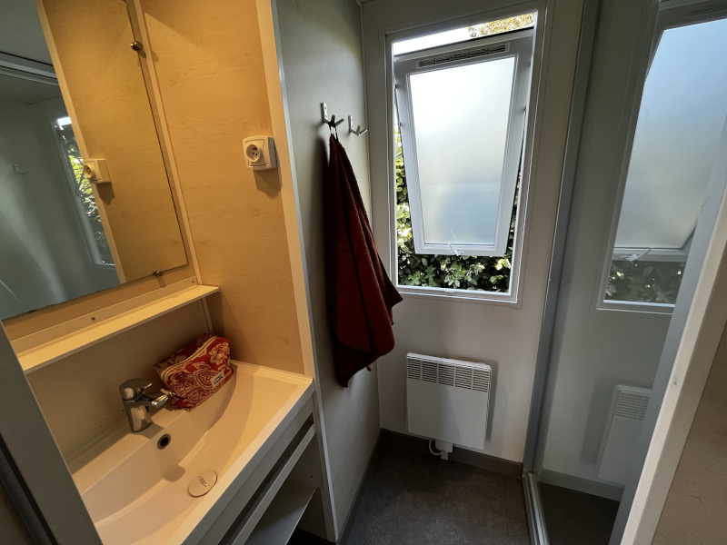 The Prestige Mobile Home for 6 people (34 m²) is ideal for a family or friends’ holiday in an exceptional natural setting. Located within our 4-star campsite in Saint-Pol-de-Léon, it combines comfort, space, and modernity for an enjoyable and memorable stay.