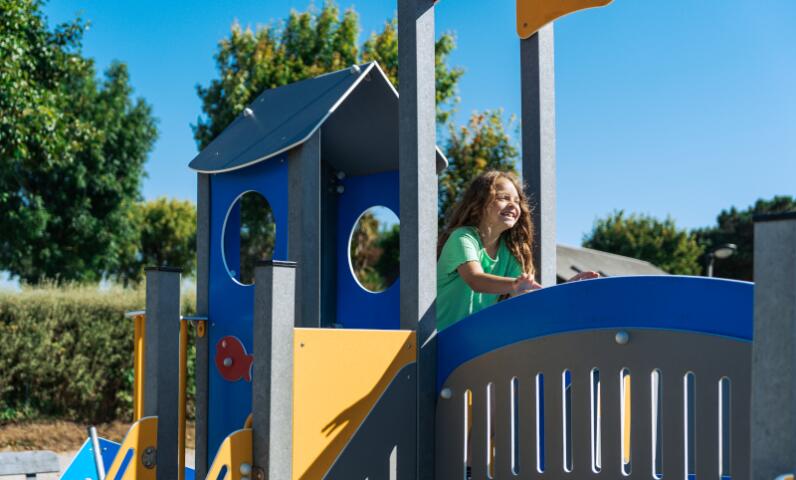 Playground: Slide and boat-shaped structure for hours of fun, ideally located near the restaurant so parents can relax while keeping an eye on the kids.