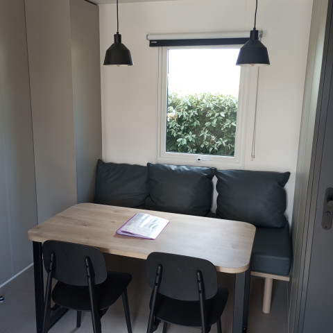 - Mobil-home Prestige Plus 32 m² : Ce modèle spacieux propose une superficie plus grande, idéale pour ceux qui recherchent encore plus de confort. Ses deux chambres confortables, son séjour ouvert et sa terrasse aménagée en font un véritable cocon pour se détendre après une journée de découvertes.
