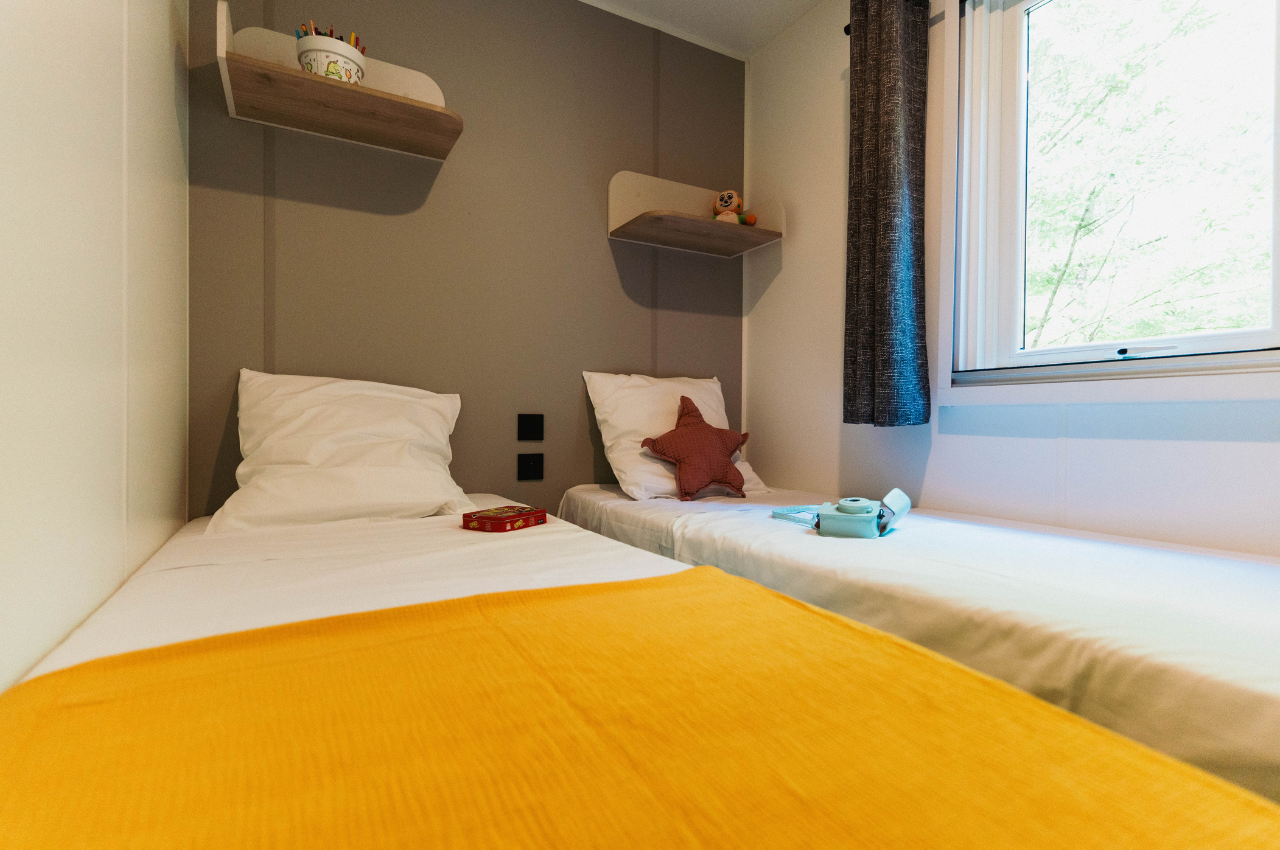 Découvrez notre tout nouvel hébergement au Camping Sunêlia Baie de Saint-Pol, pensé pour les familles et conçu pour offrir espace, confort et modernité. Avec ses 3 chambres, sa pièce de vie agréable et ses deux terrasses, dont une en rooftop, ce mobil-home promet des moments inoubliables.
