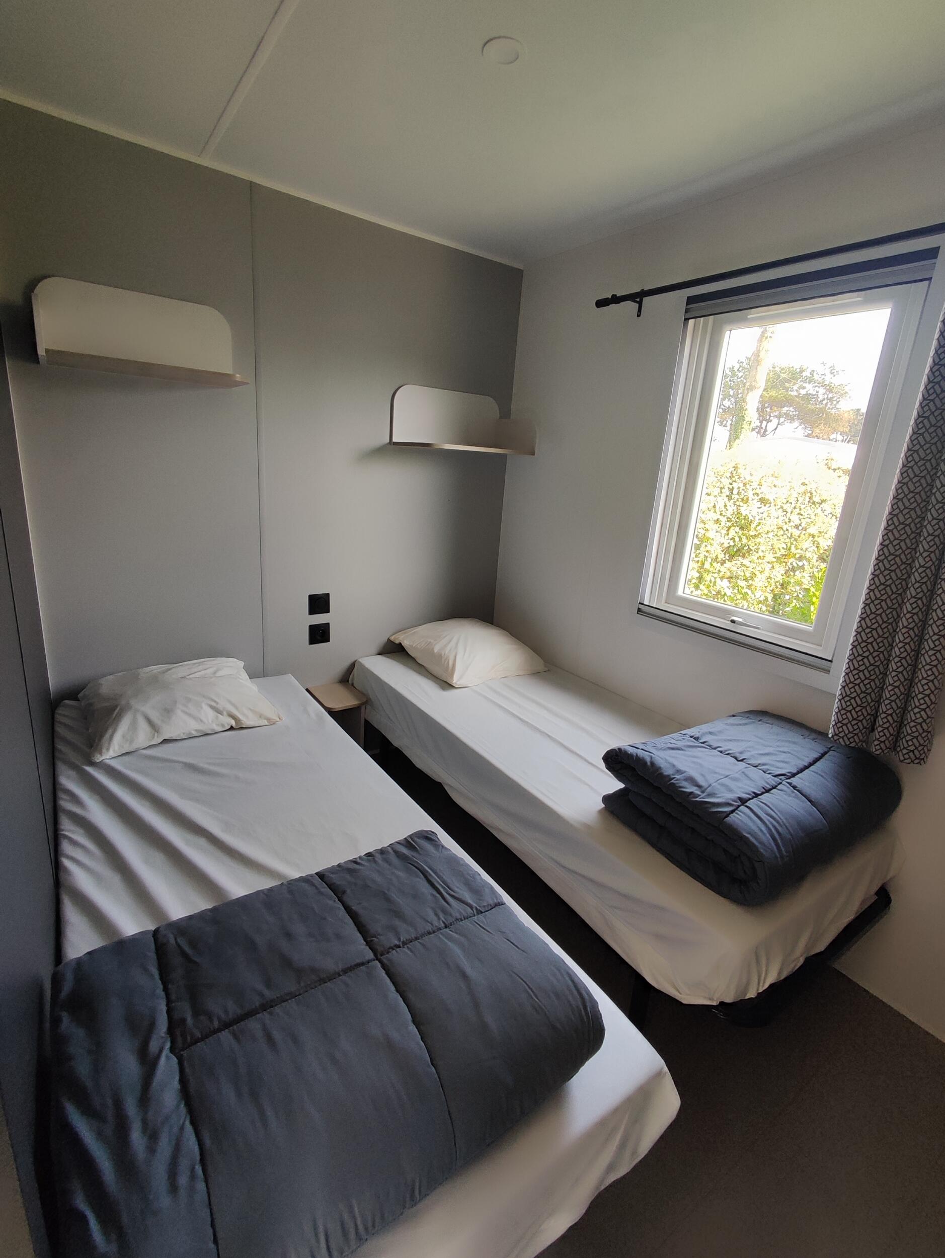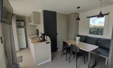 De Prestige Plus stacaravan voor 4 personen (27 m²) biedt een onvergetelijk verblijf op onze 4-sterrencamping in Saint-Pol-de-Léon. Modern en perfect ingericht, combineert het comfort, praktisch gemak en elegantie, ideaal voor een vakantie met familie of vrienden, op slechts enkele stappen van het strand en de betoverende landschappen van Noord-Finistère.